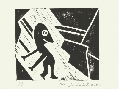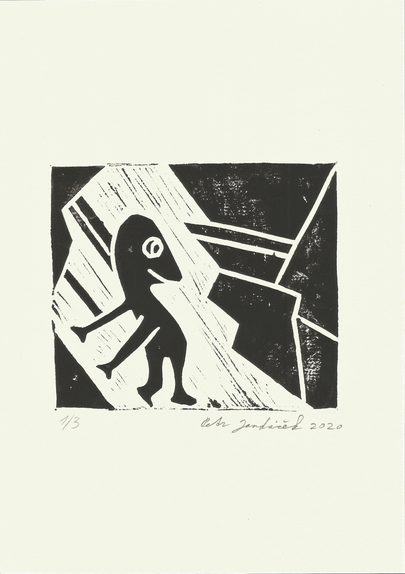 Linoryt - volný grafický list bez rámu. Vyhotoveny tři tisky.