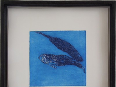 Linoryt - tisk z houbky, rámováno (antireflexní sklo, dřevěný rám). V případě koupě také grafiky "M" ze stejného cyklu je cena obou grafik 9 200 Kč.