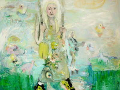 V malbách poslouchá intuici. Zavede nás po přátelské cestě do neznámé země. Do expresivních krajin, kde vybuchují barvy a explodují tvary. V krajině plné tajemství se potkáme s překvapivými souvislostmi a různorodými postavami. Nabízí nové příběhy se známými prvky v jiném kontextu, v jiném prostředí, v jiné krajině... Hledejte neortodoxní témata, otázky vlastní identity, manipulace, odpovědi na mezigenerační vztahy.