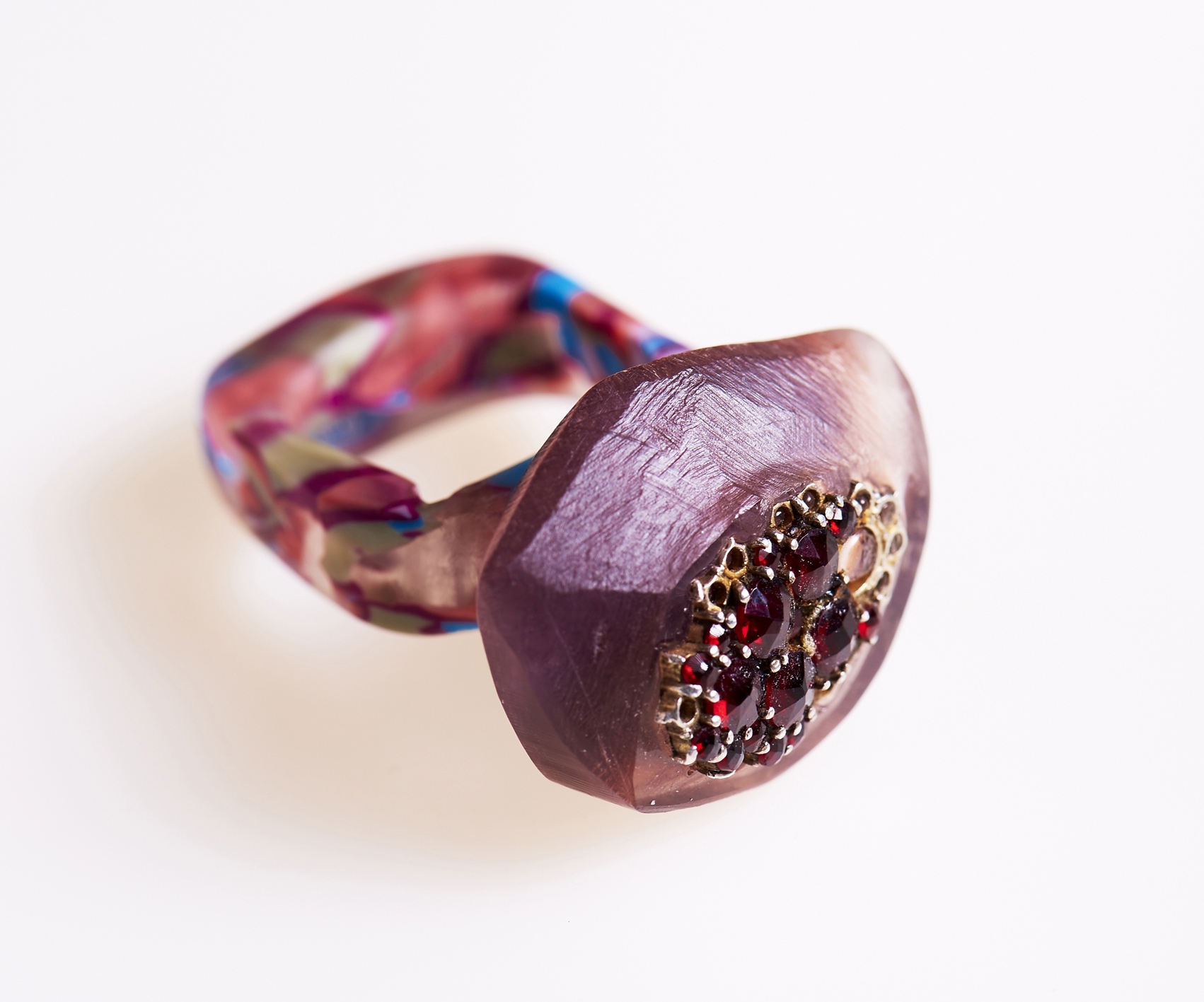 acetát celuloza = organický plast, stará stříbrná troska šperku s českým granátem