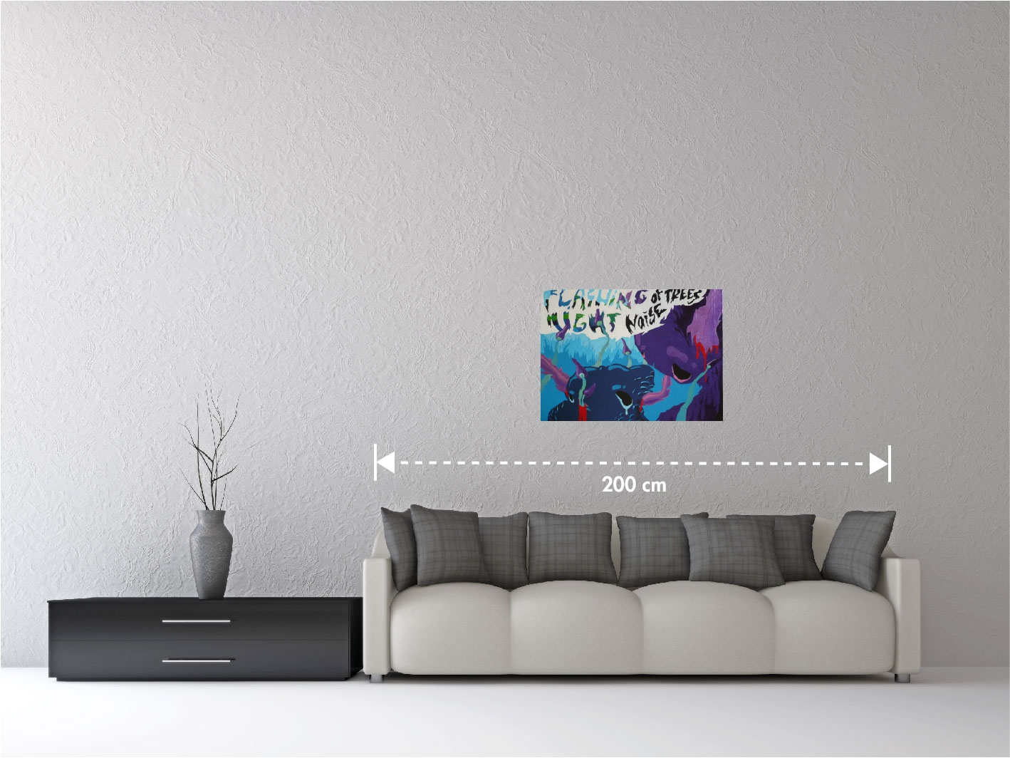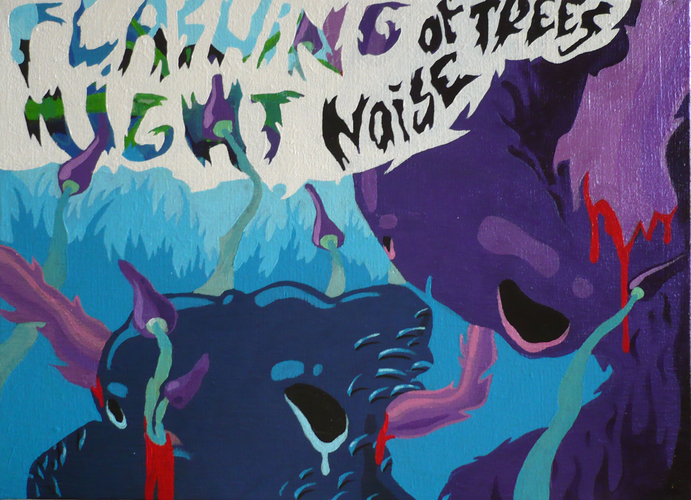 Je obraz ze souboru Strážci-Watchmen, všechny obrazy z tohoto souboru obrazů na černém plátně odkazují k jednomu příběhu: Kdy se znuděný muž ocitá každou noc ve snovém světě, který je pokaždé stejný a kde si kompenzuje svůj nenaplněný život brutálním pronásledováním tvorů z jiného světa. Když jednou se v tomto světě probudí jako jeden z nich a beze zbraní je jim vydán za svoje prohřešky na milost. Svět oněch roztodivných tvorů se nachází především v hlubokém lese se světélkující faunou a flórou na pozadí temné černo černé tmy. Příběh končí odplatou tvorů ale zároveň i nadějí na vzkříšení, kdy nejmoudřejší z nich nesou jeho ostatky do jeskyně znovuzrození. Muž se ráno probouzí jako obvykle, ze svého barvitého a realistického snu, avšak do zcela bílého pokoje... Flashing night je jako komixové políčko, kdy nápis flashing night, noise of trees - blikající noc a šum stromů přibližuje k atmosféře jinak nepopsatelné krajiny s tvory a jejich světu.