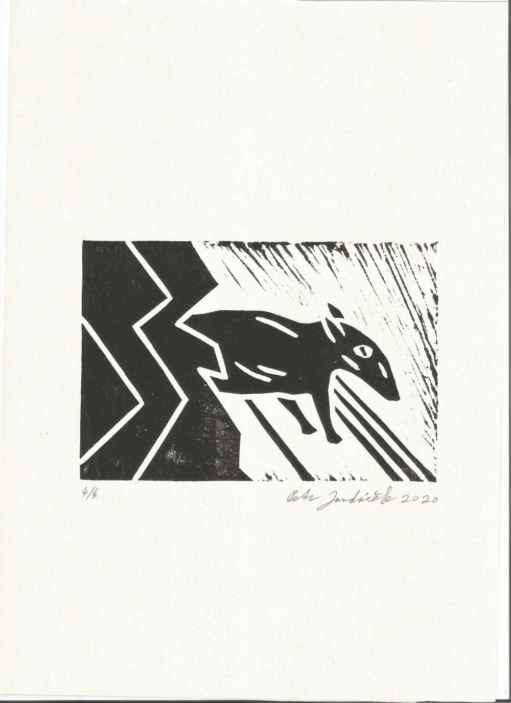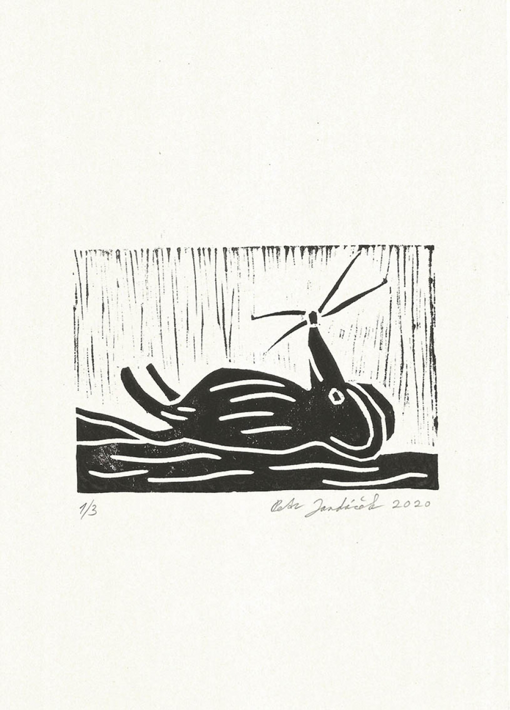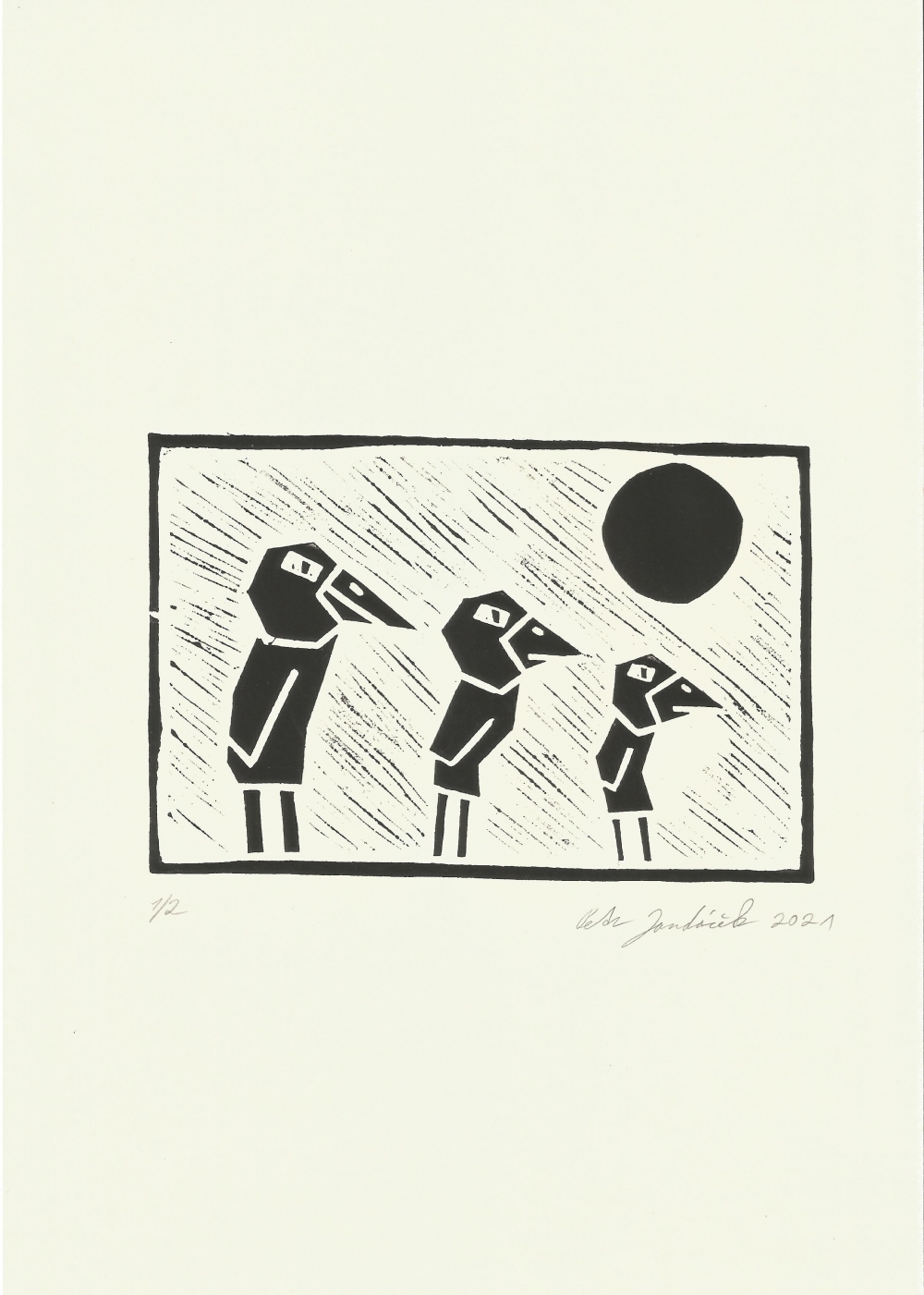 Linoryt - volný grafický list bez rámu. Vyhotoveny 3 kusy.