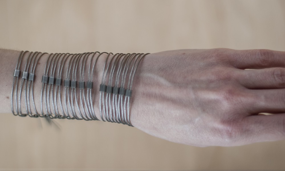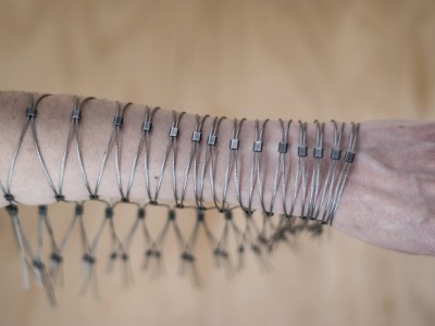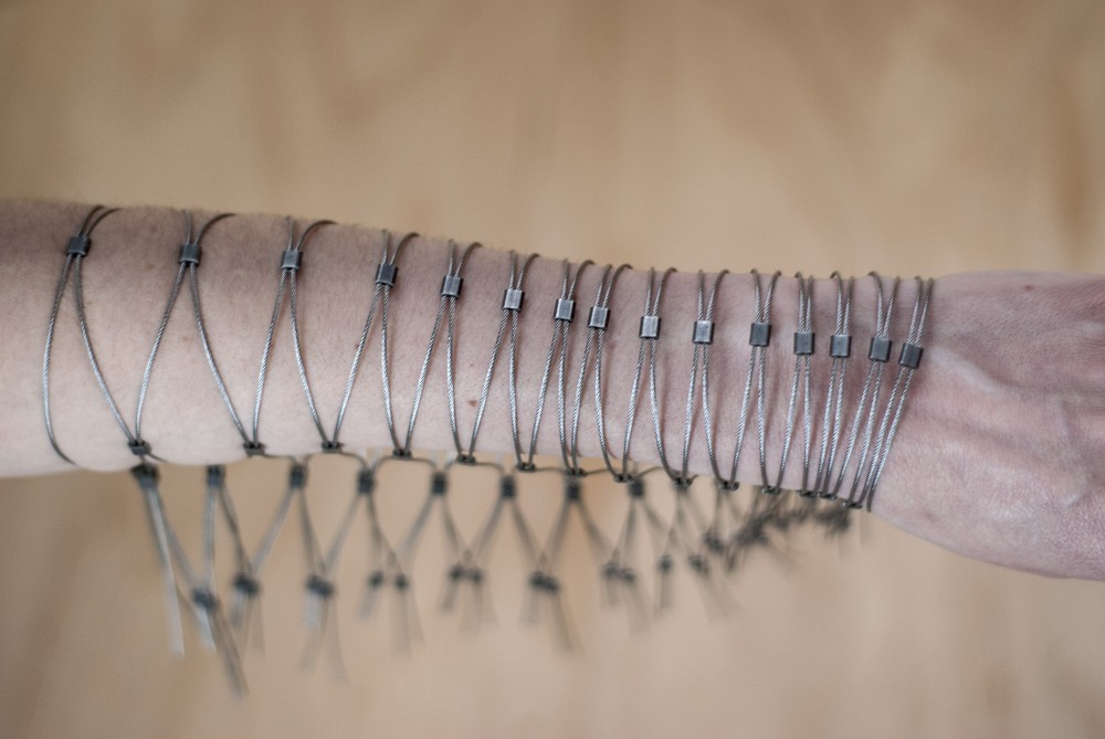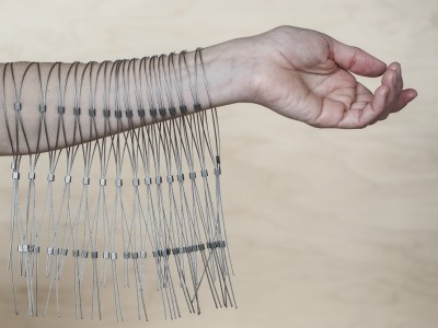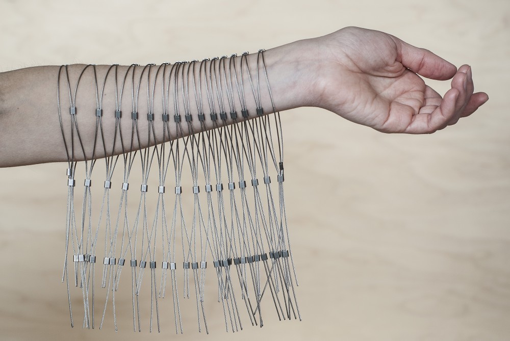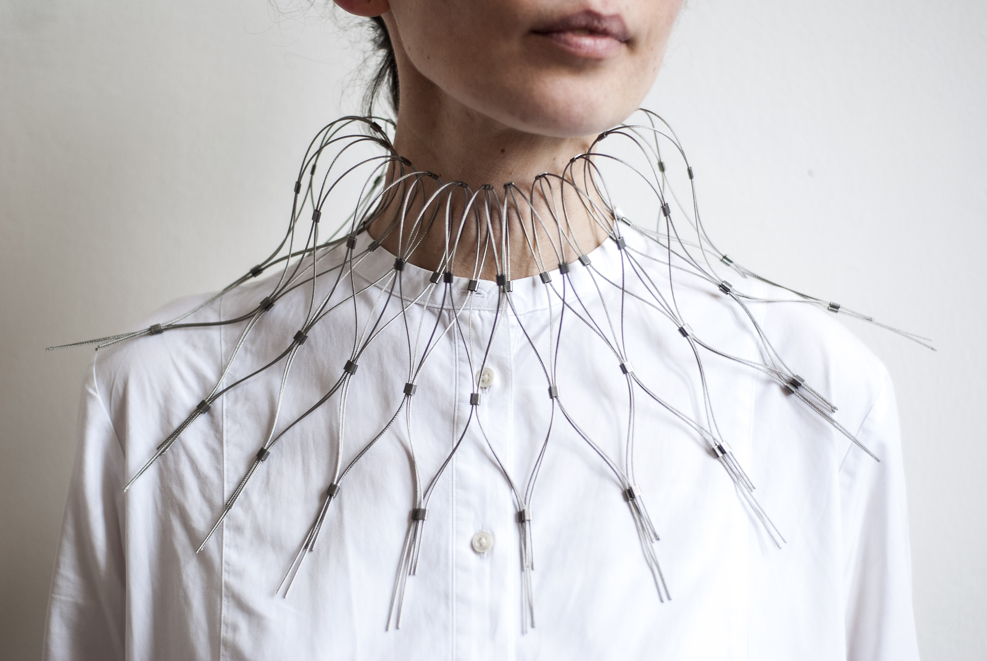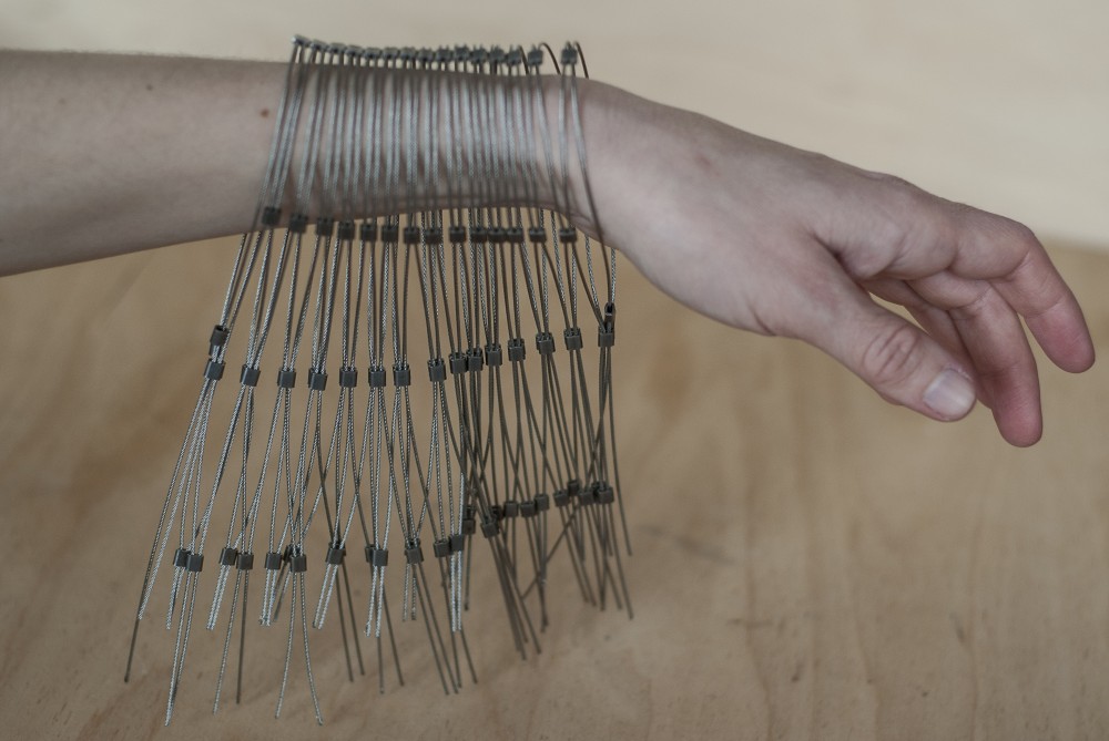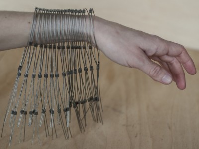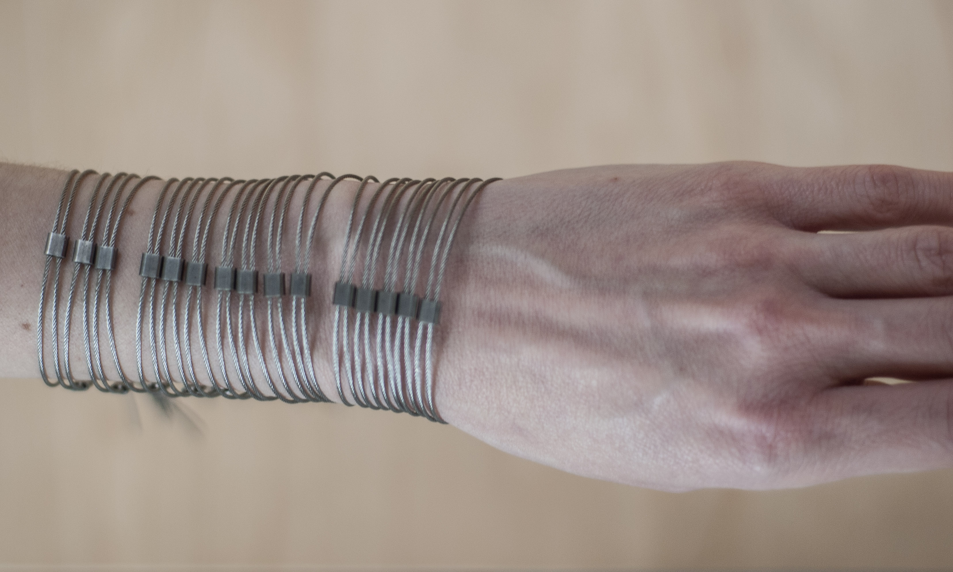 Ocelové lanko, plechové spojnice, neodymové magnety.