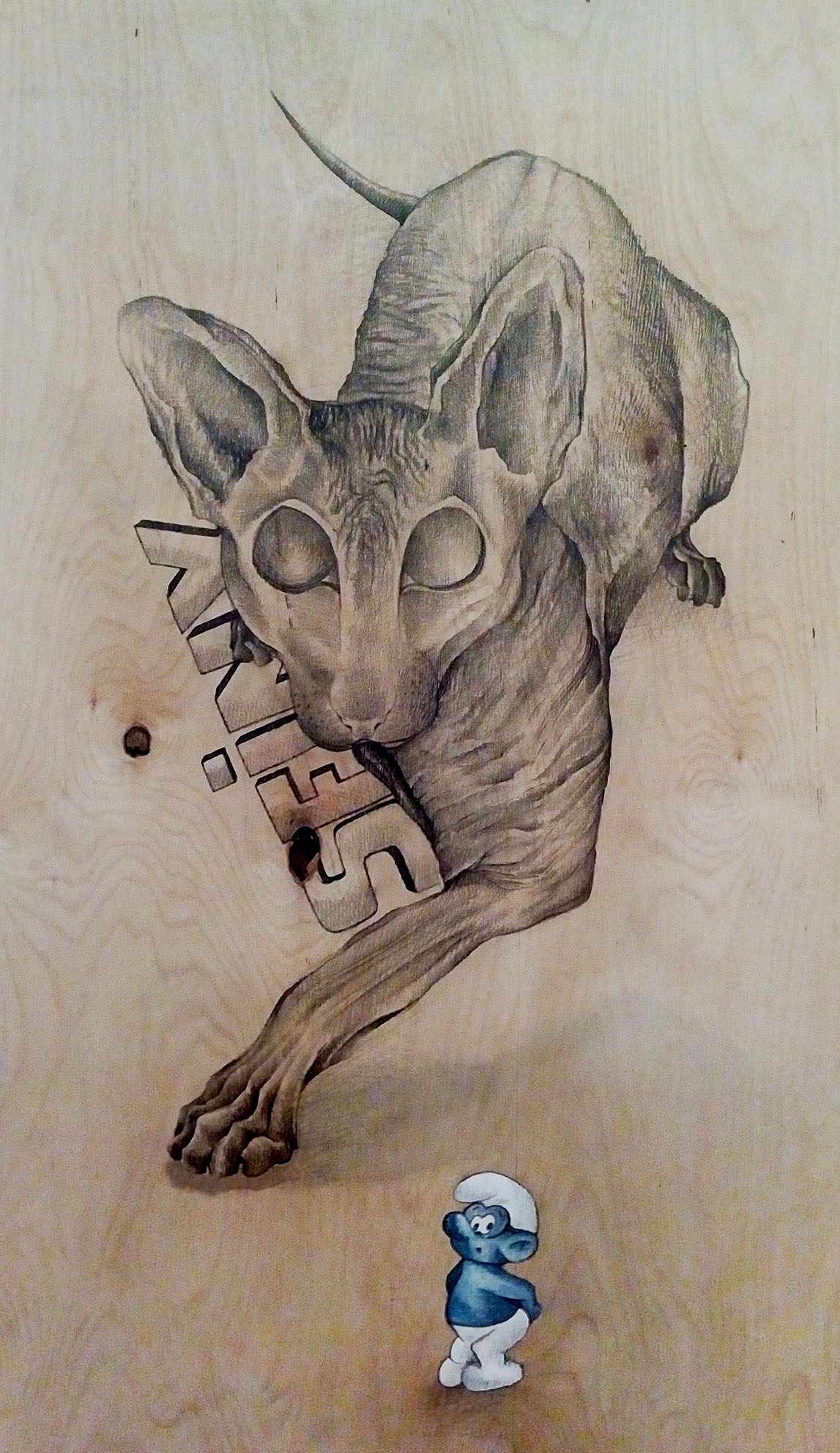 kresba tužkou na překližce