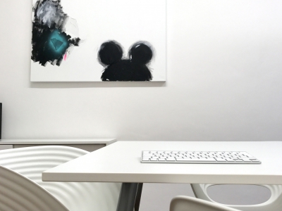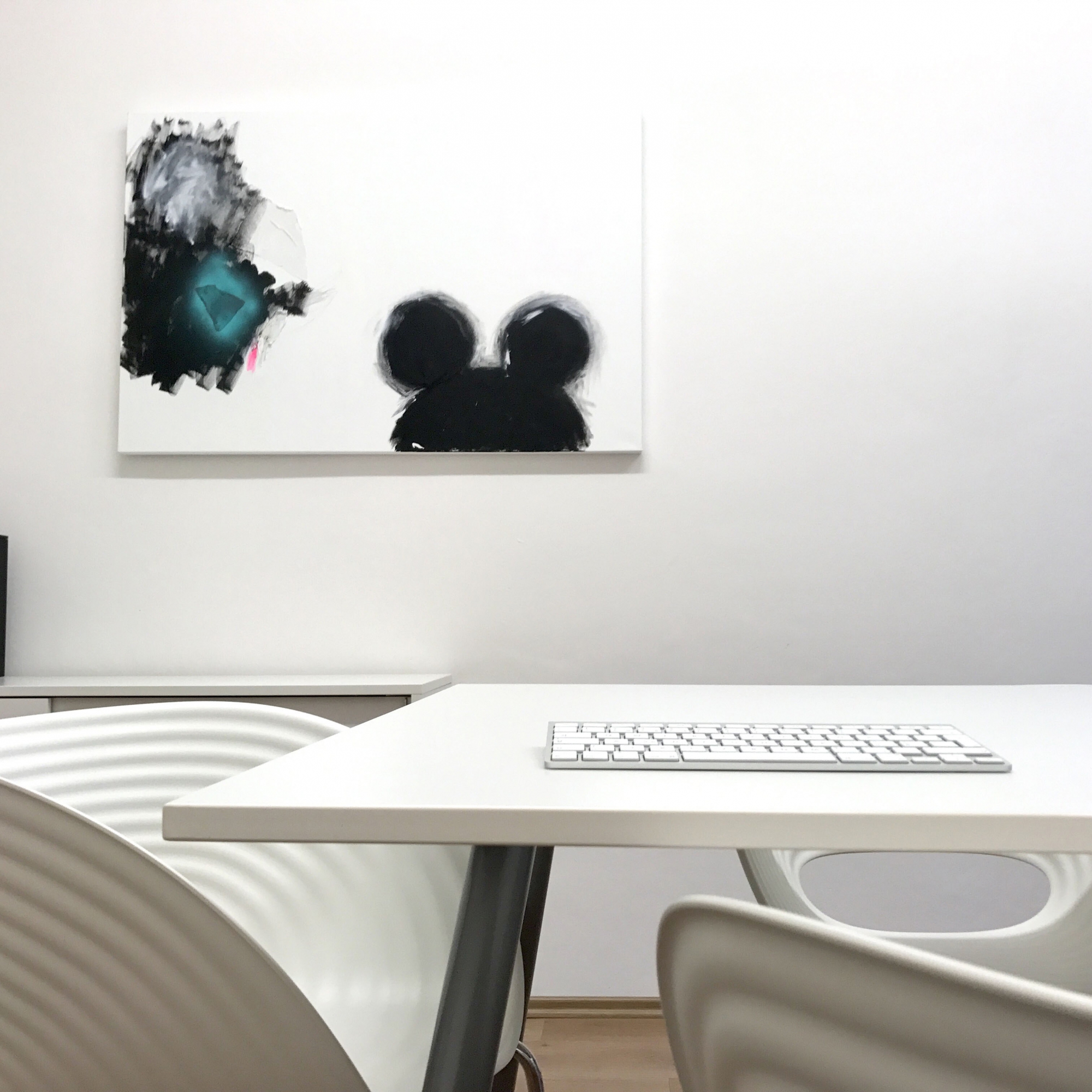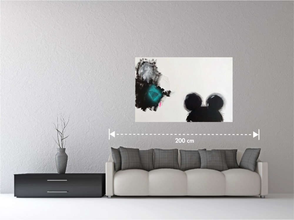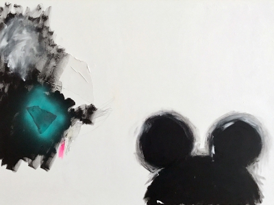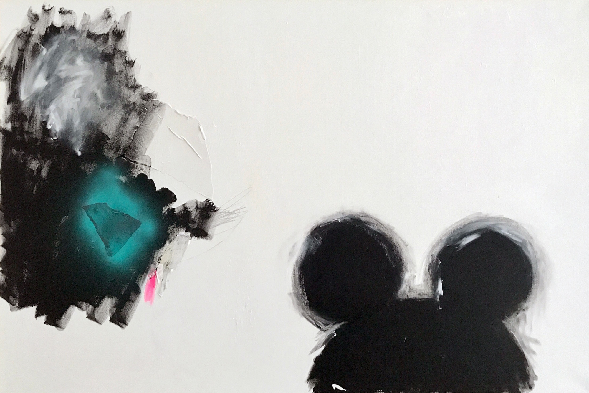 kombinovaná technika na plátně (akryl, plast, olejové pastely, uhel, sprej)