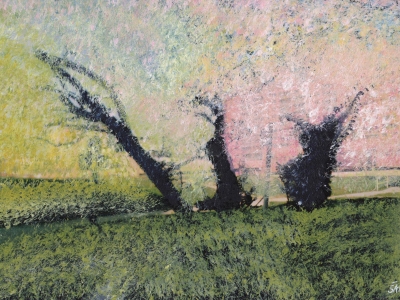 V této technice vstupuji do prostoru fotografie barvou. Narušuji její hranice a autonomii, záměrně měním její obsah i formu. Fotografie pořizuji sama a jsem tak přímým účastníkem události, kterou následně přeměňuji malbou. Odhaluji skryté děje, měním vztahy a významy toho, co nazýváme skutečností. Symbolicky jde o hledání možností a odvahy měnit někdy zdánlivě neměnitelnou realitu a události v našem životě. Velmi často fotografie a původní motiv zmizí pod malbou beze zbytku, přesto ale vždy zůstávají ve výsledku obsažené, stejně jako například základy domu v zemi…
