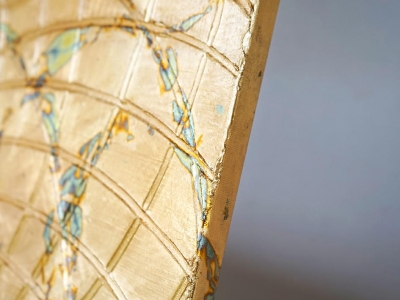 Created as sunken relief, a special technique Sarah invented almost 20 years ago. This method is typical only for artworks from ancient Egypt. Her paintings are also often created using a low relief (bas-relief) technique that looks almost like an impasto.