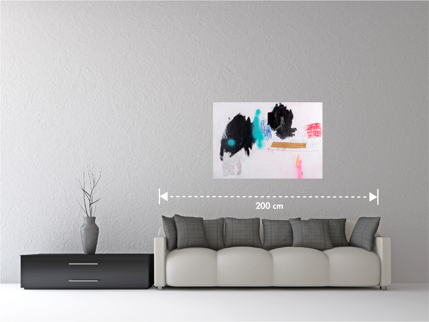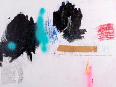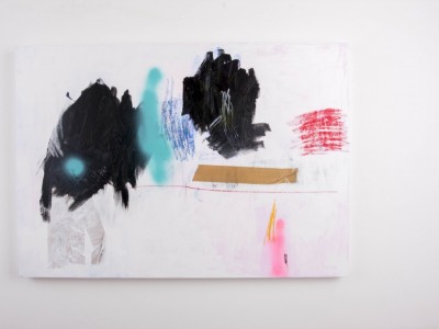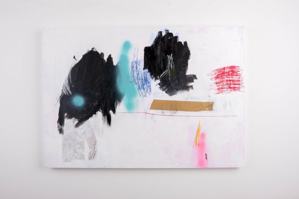 kombinovaná technika na plátně (akryl, lepící páska, olejové pastely, sprej)