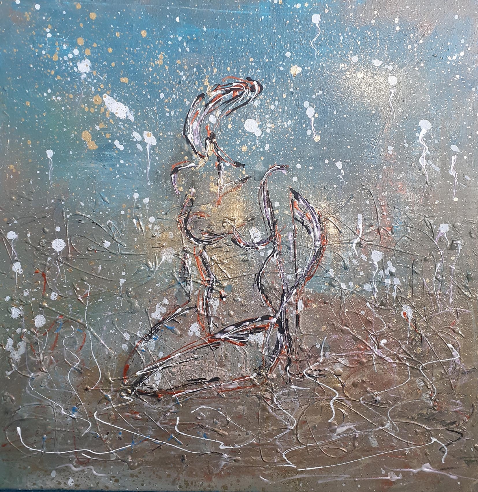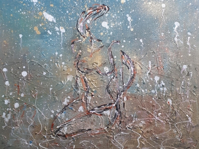 kombinovaná technika na plátně
