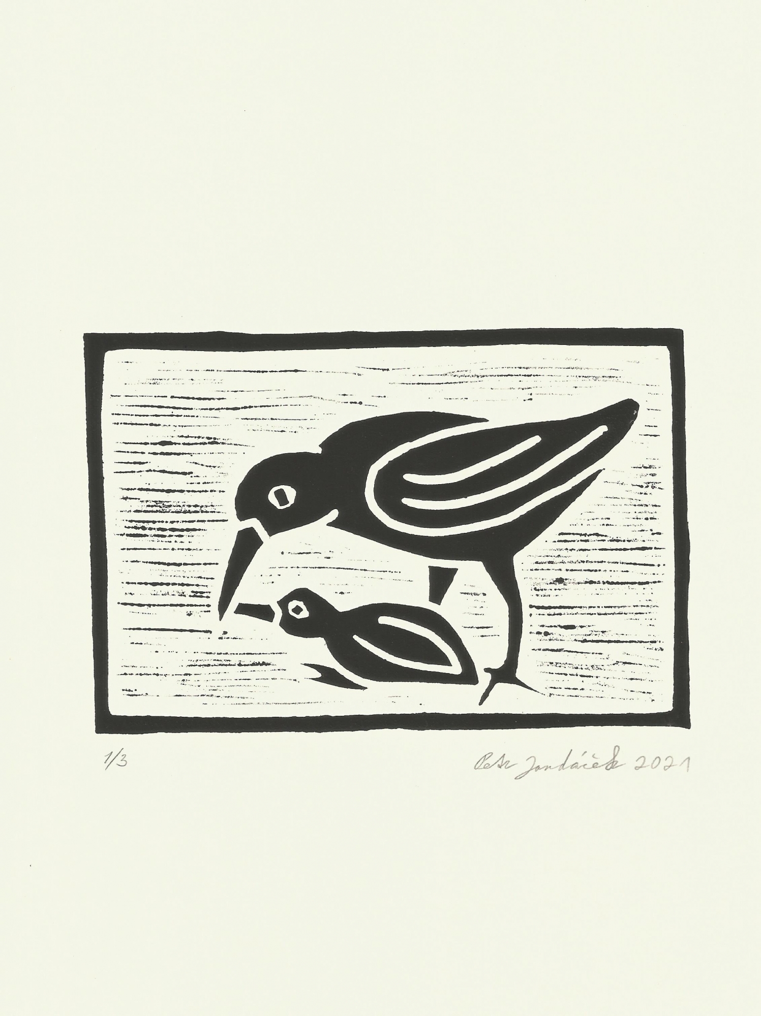 Linoryt - volný grafický list bez rámu. Vyhotoveny tři tisky.